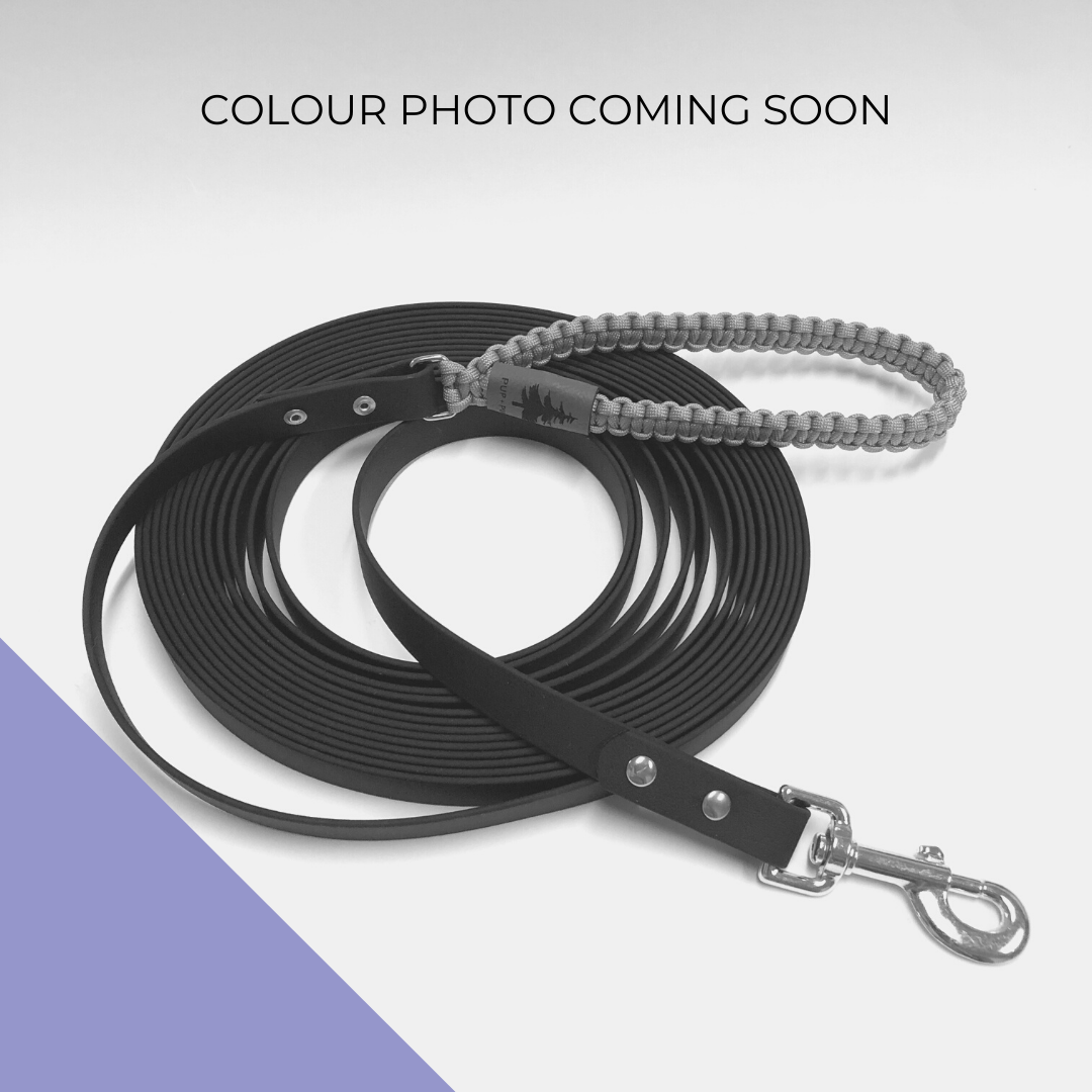 Whether you're blazing trails or strolling around the city, make adventures with your pup safe and comfortable with our Long Line. Our high-quality biothane, vegan leather, aluminum or brass hardware and handwoven paracord design make it durable and stylish. This is the perfect leash for hikes and recall training.