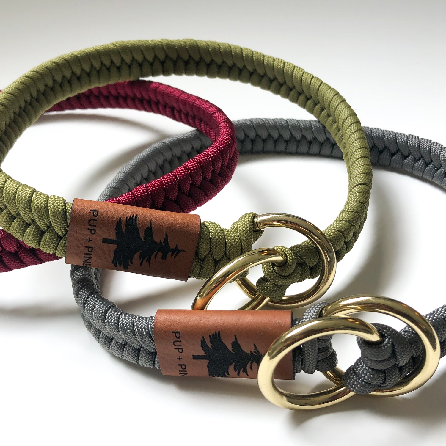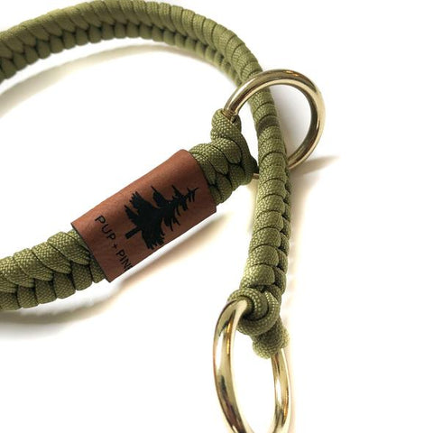 Whether you're blazing trails or strolling around the city, make adventures with your pup safe and comfortable with the Slip Collar. Our high-quality vegan leather, brass hardware and handwoven paracord design make it durable and stylish. Our Slip Collar is great for training and everyday use.
